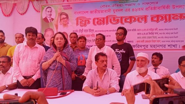 ফরিদপুর মহানগর বিএনপির সিনিয়র সহ সভাপতি এম এম ইউসুফ ভিপি ইউসুফ এর সভাপতিত্বে এবং মহানগর যুবদলের সম্পাদক আলী রেজওয়ান বিশ্বাস তরুনের সঞ্চালনায় অনুষ্ঠানে প্রধান অতিথি ছিলেন ঢাকা মহানগর উত্তরের আহ্বায়ক এবং জাতীয়তাবাদী মহিলা দলের কেন্দ্রীয় সংসদের যুগ্ম আহ্বায়ক নায়াব ইউসুফ। বিশেষ অতিথি ছিলেন ফরিদপুর মহানগর বিএনপি’র আহবায়ক এ এফ এম কাইয়ুম জঙ্গি, ফরিদপুর জেলা বিএনপির সদস্য সচিব একে কিবরিয়া স্বপন ফরিদপুর মহানগর বিএনপি’র সদস্য সচিব গোলাম মোস্তফা মিরাজ, কোতোয়ালি থানা বিএনপির সাধারণ সম্পাদক নাজমুল আলম রঞ্জন চৌধুরী, অনুষ্ঠান পরিচালনা করেন মহানগর বিএনপি সহ-সভাপতি সেলিম মিয়া সেলিম। এ সময় বিএনপি ও তার অঙ্গ সংগঠনের নেতৃবৃন্দ উপস্থিত ছিলেন। অনুষ্ঠানে ফ্রি মেডিকেল ক্যাম্পের উদ্বোধন করেন ডক্টর অ্যাসোসিয়েশন অফ বাংলাদেশের ফরিদপুর জেলা শাখার সভাপতি ডাক্তার মোস্তাফিজুর রহমান শামীম।