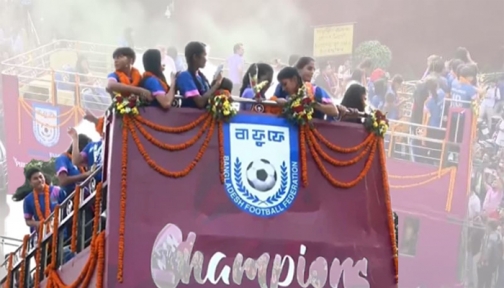 এবারও সেই নেপালকেই ২-১ ব্যবধানে হারিয়ে ট্রফি উল্লাস করেছে মেয়েরা। মাঠে ট্রফি উদযাপন শেষে এবার ছাদখোলা বাসে উল্লাসের অপেক্ষায় বাংলাদেশের বাঘিনিরা।
