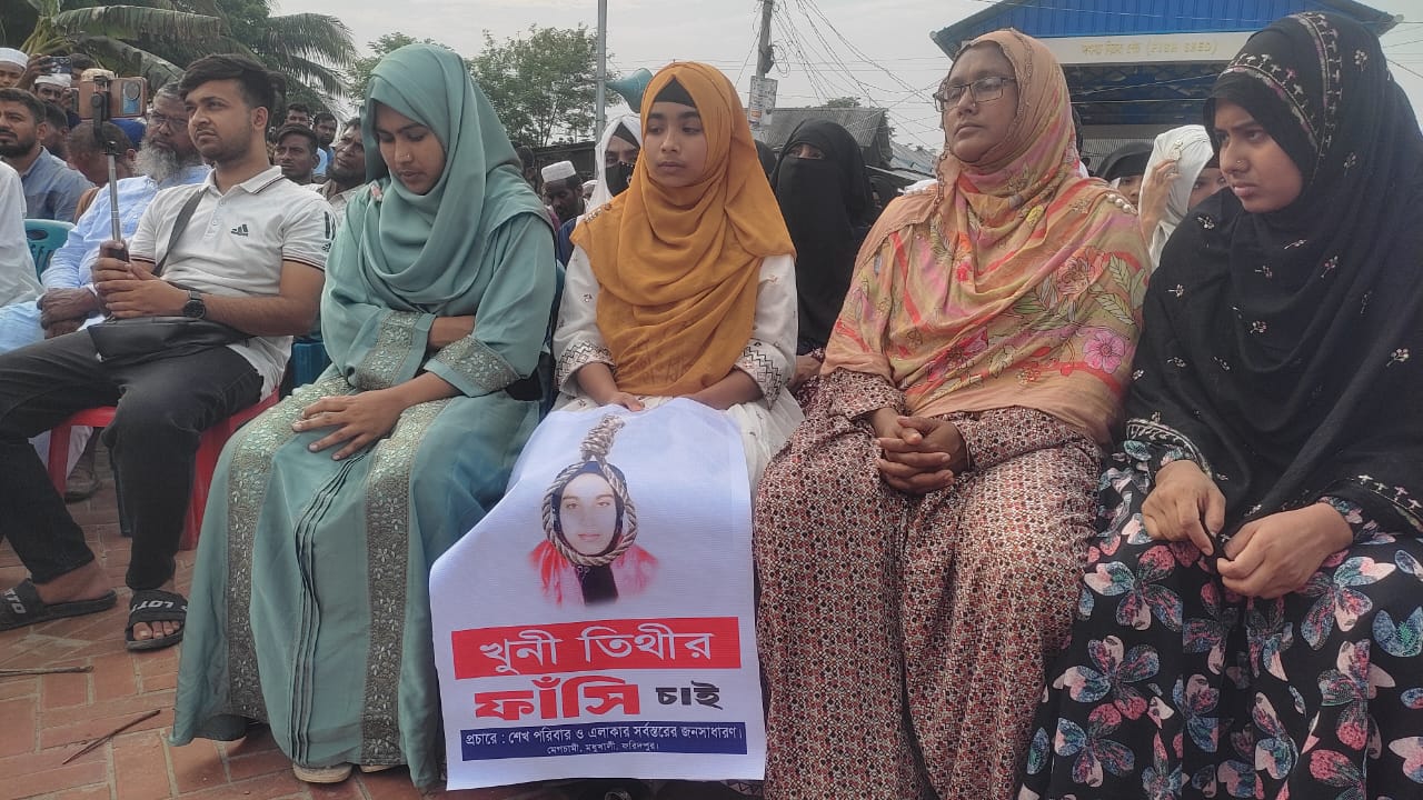 এ সময় উপস্থিত জনতার হৃদয় স্পর্শ করে নিহতের কন্যা তাহসিন আহমেদ ঝিলিকের বক্তব্য। হাতে ‘বাবার খুনি মা’ লেখা প্ল্যাকার্ড ও মায়ের ছবি উঁচিয়ে তিনি কান্নাভেজা কণ্ঠে বলেন, “আমি আমার বাবার হত্যাকারীর, আমার মায়ের, সর্বোচ্চ শাস্তি চাই – ফাঁসি চাই!” তার এ দাবিতে পুরো সভা জুড়ে আবেগঘন পরিবেশ সৃষ্টি হয়।