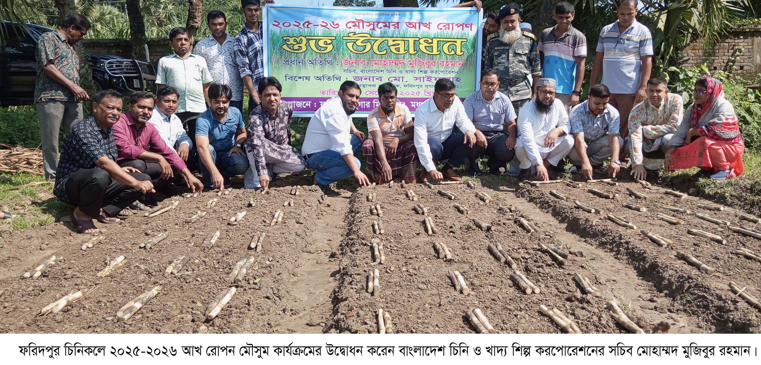 বাংলাদেশ চিনি ও খাদ্য শিল্প করপোরেশনের আওতাধীন সকল চিনিকলে এক যোগে রোপন মৌসুমের উদ্বোধনের অংশ হিসেবে ফরিদপুর চিনিকলেও ২০২৫—২০২৬ আখ রোপন মৌসুমের শুভ উদ্বোধন করা হয়েছে।