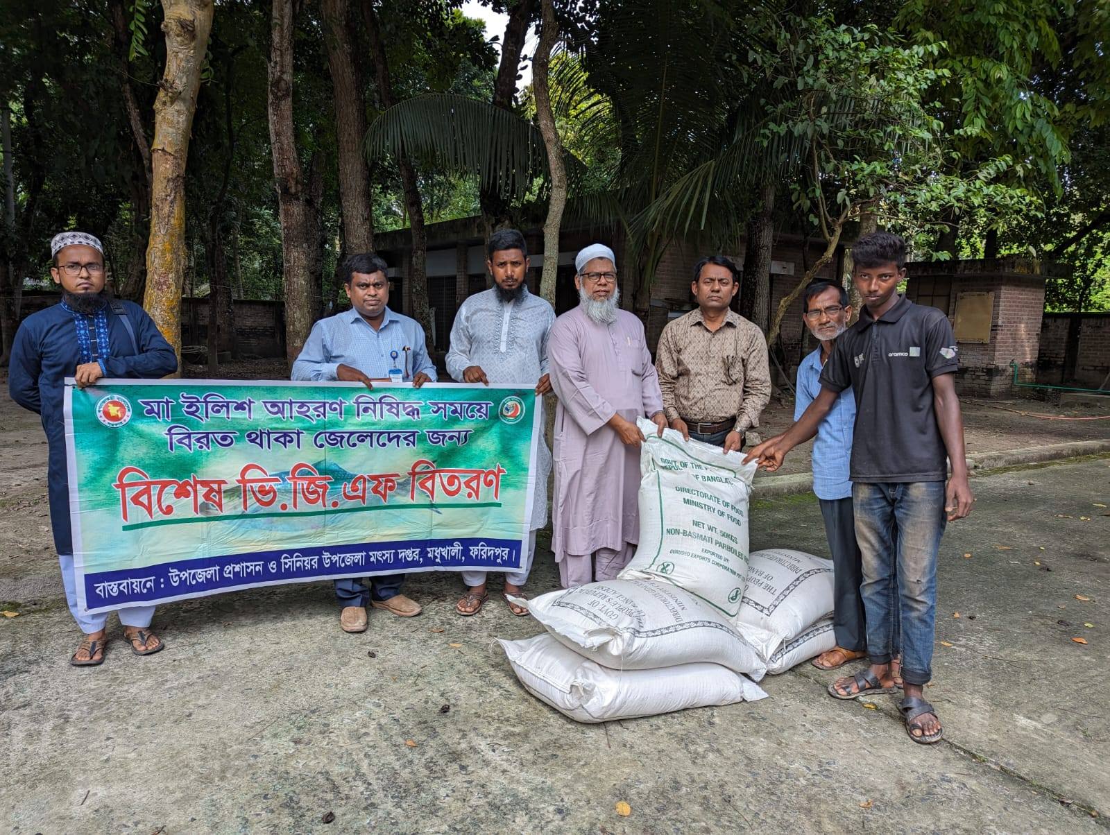 মধুখালীতে জেলেদের মাঝে ভি.জি.এফ. চাল বিতরন