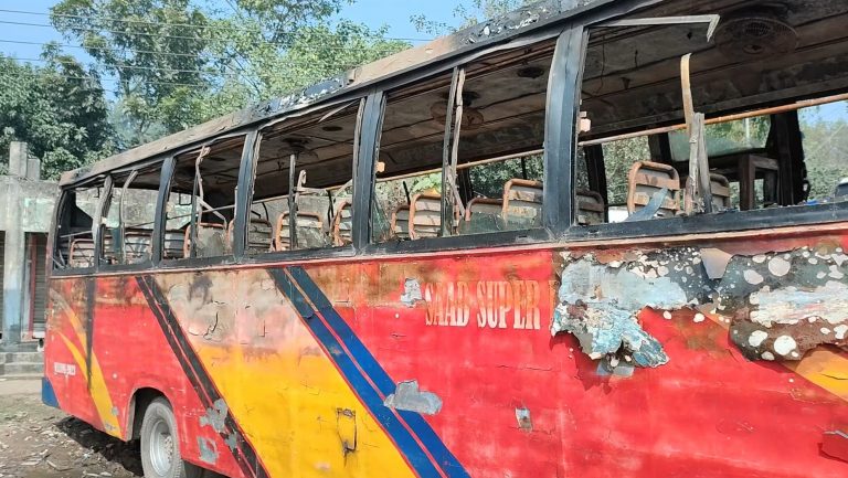 ফরিদপুরে টার্মিনালে রাখা বাসে গভীর রাতে আগুন দিয়েছে দূর্বৃত্তরা