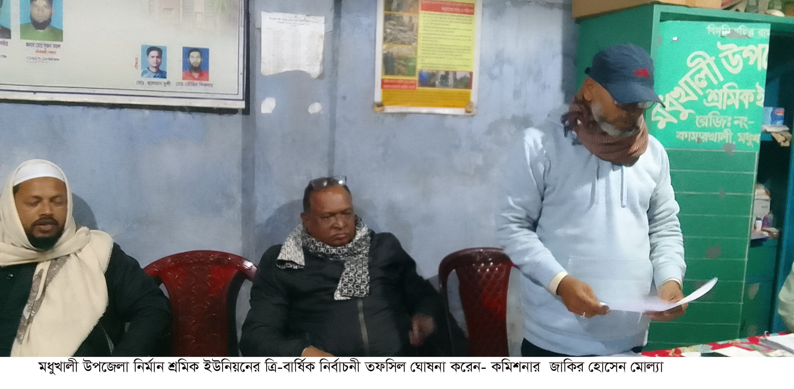 মধুখালী উপজেলা নির্মান শ্রমিক ইউনিয়নের ত্রি-বার্ষিক নির্বাচনী তফসিল ঘোষনা