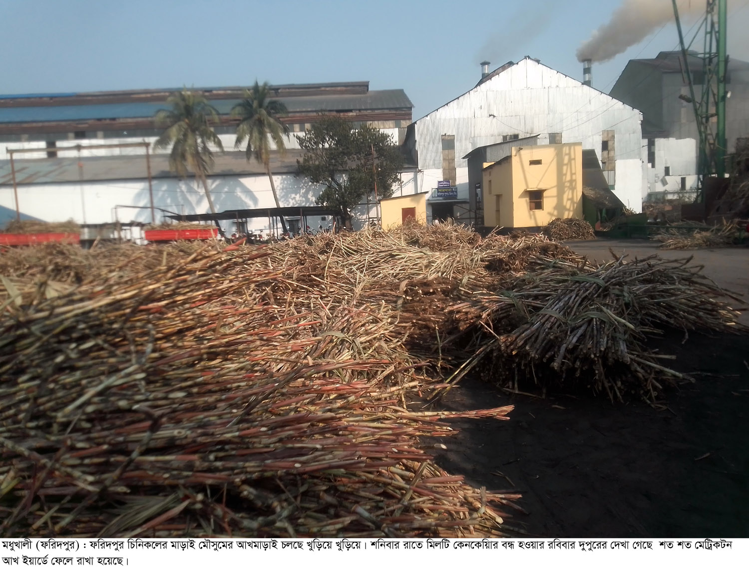 ফরিদপুর চিনিকলে যান্ত্রিক ত্রুটি আখ মাড়াই বন্ধ,শত শত মেট্রিকটন আখ শুকিয়ে যাচ্ছে আখচাষীদের চরম ভোগা