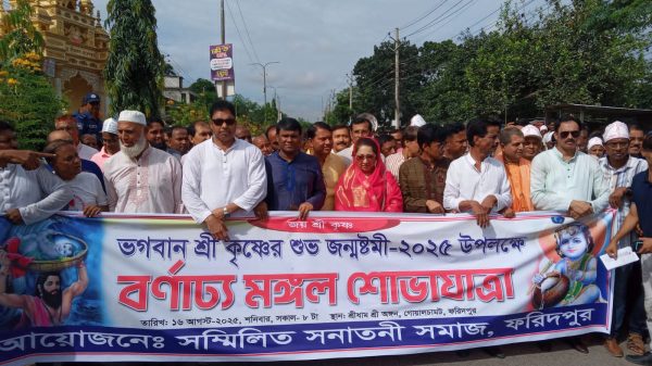 ভগবান শ্রীকৃষ্ণের জন্মাষ্টমী উপলক্ষে ফরিদপুরে সম্মিলিত সনাতনী সমাজের উদ্যোগে বর্ণাঢ্য শোভাযাত্রা অনুষ্ঠিত