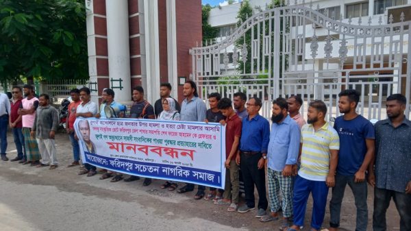 ফরিদপুরে সচেতন নাগরিক সমাজের ব্যানারে মানববন্ধন অনুষ্ঠিত