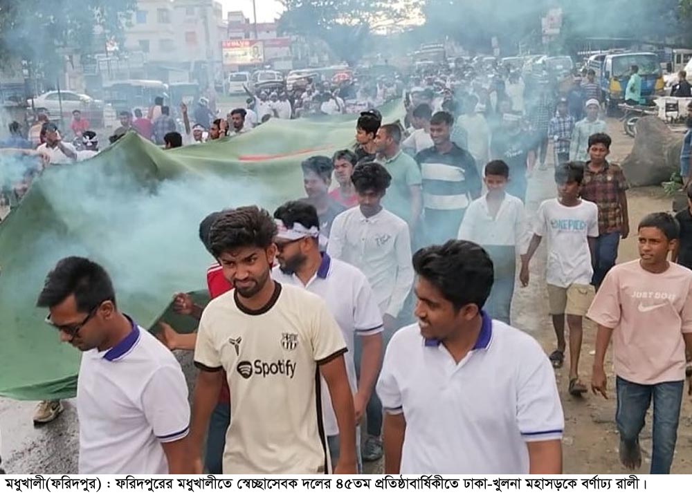 মধুখালীতে স্বেচ্ছাসেবক দলের ৪৫তম প্রতিষ্ঠা বার্ষিকীতে ঢাকা -খুলনা মহাসড়কে বর্ণাঢ্য র্যালি