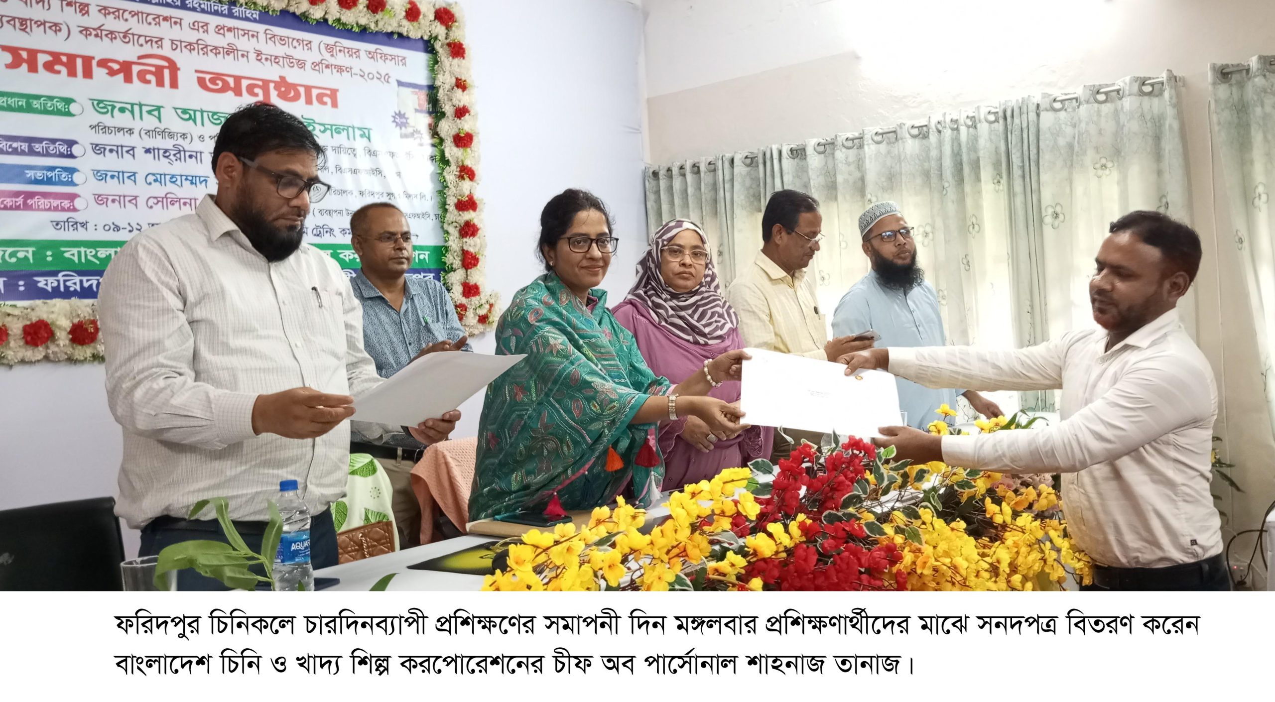 ফরিদপুর চিনিকলে কর্মকর্তাদের চারদিন ব্যাপী চাকুরিকালীন ইনহাউজ প্রশিক্ষণ সমাপ্ত