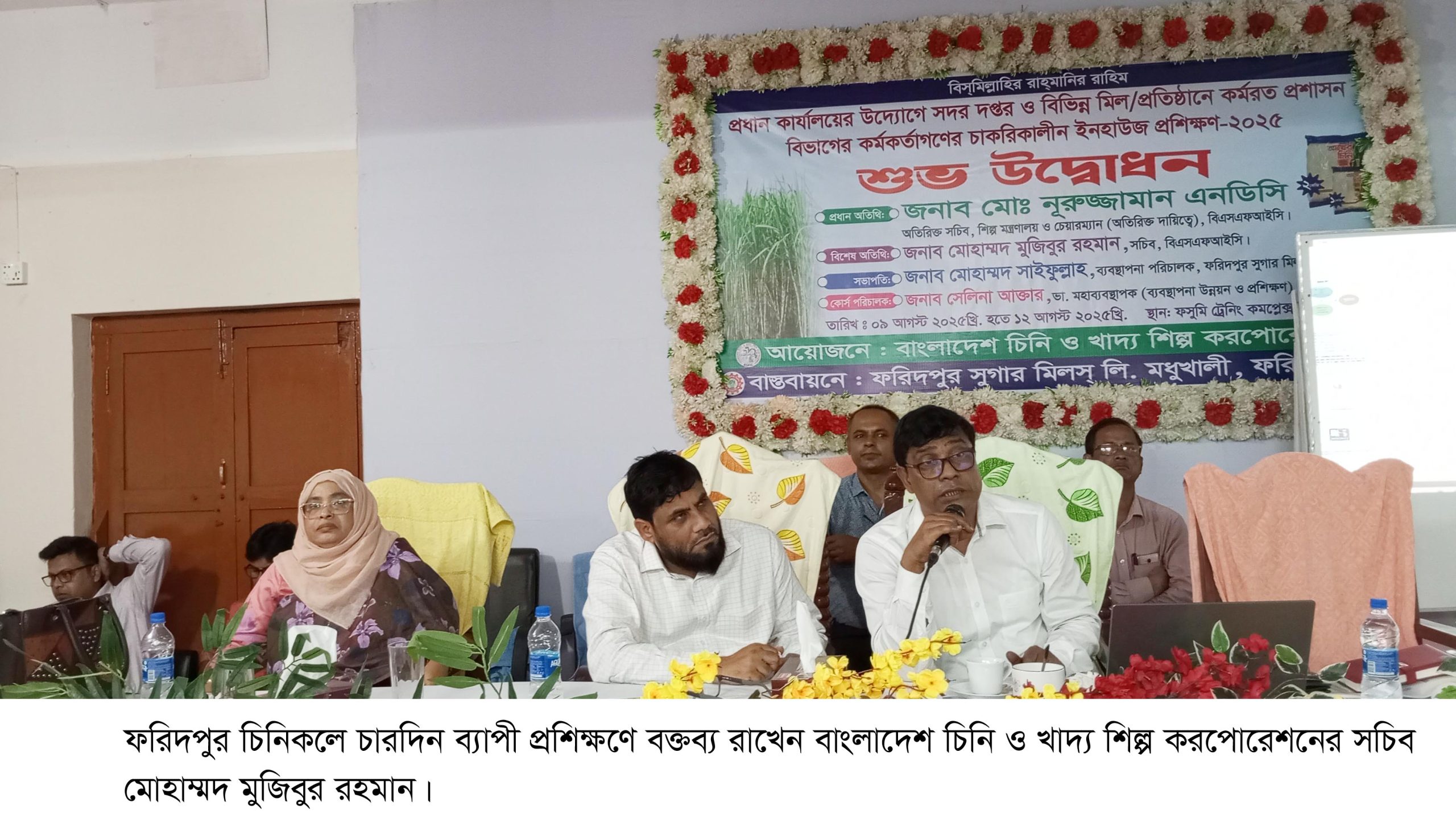 ফরিদপুর চিনিকলে কর্মকর্তাদের চারদিন ব্যাপী চাকুরিকালীন ইনহাউজ প্রশিক্ষণ শুরু