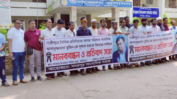 সাংবাদিক আসাদুজ্জান তুহিন হত্যা সদরপুরে মানববন্ধন ও প্রতিবাদ সমাবেশ