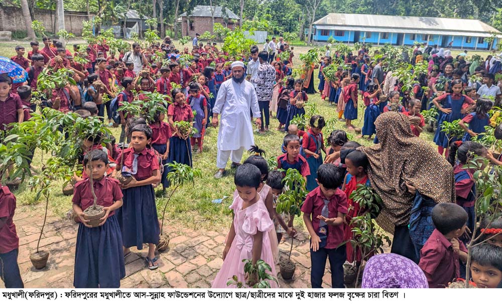 আস-সুন্নাহ ফাউন্ডেশনের বৃক্ষরোপন কর্মসূচী মধুখালীতে এক হাজার ছাত্র/ছাত্রীর মাঝে দু,হাজার ফলজ বৃক্ষের চারা বিতরণ