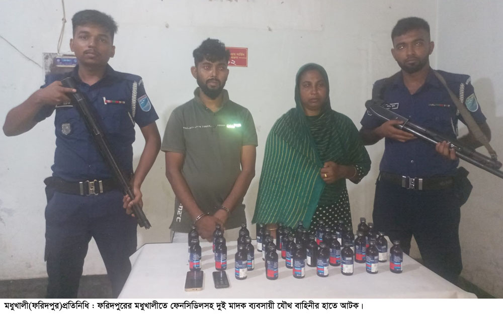 মধুখালীতে যৌথ বাহিনীর অভিযানে ফেনসিডিলসহ এক নারীসহ দুই মাদক ব্যবসায়ী আটক