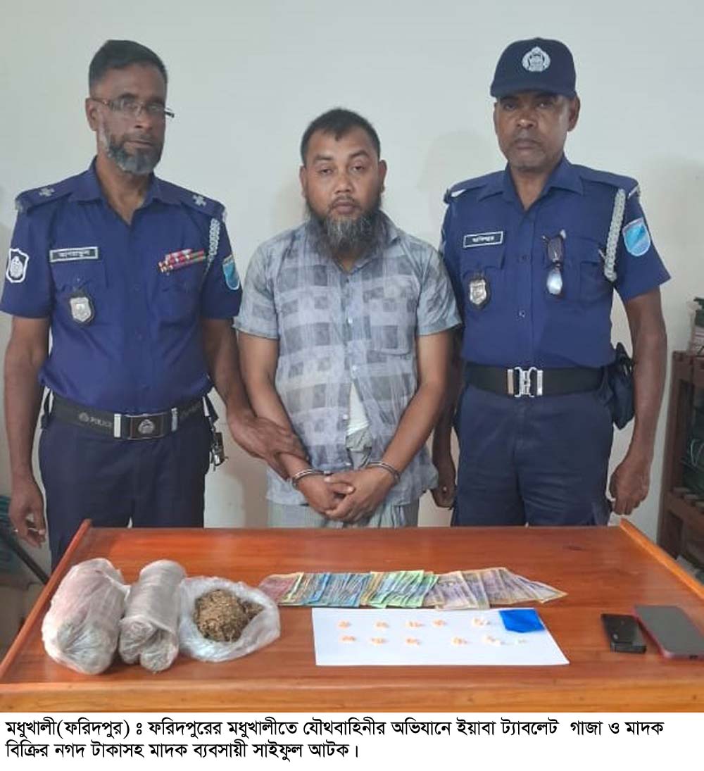 মধুখালীতে শীর্ষ মাদক ব্যবসায়ী ইয়াবা ট্যাবলেট, গাঁজা ও নগদ টাকাসহ যৌথবাহিনীর হাতে আটক